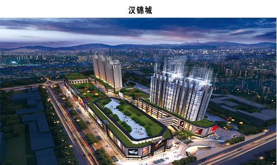 注重情景体验,是汉锦城项目设计的宗旨。不仅要让消费者实现购物目的、娱乐目的,更要让消费者拥有独到的体验感。以多个组团形成的汉锦城,整体规划为步行街、shopping mall、景观组团、高端住宅于一体的综合商业模式,主要由以购物商场为主的汉美百货、以餐饮美食为主的汉乐汇、以高端商务写字楼为主的汉锦广场、以情景体验为主的商业步行街、城中心高端景观住宅汉锦豪庭以及滨河天地城中公园组成。在每一个组团中,项目都极为注重生态景观的融入,比如商务组团汉锦广场及高端住宅汉锦豪庭,皆以360°全景观视野而著称。而滨河天地城中公园,更是汉锦城的一大力作。