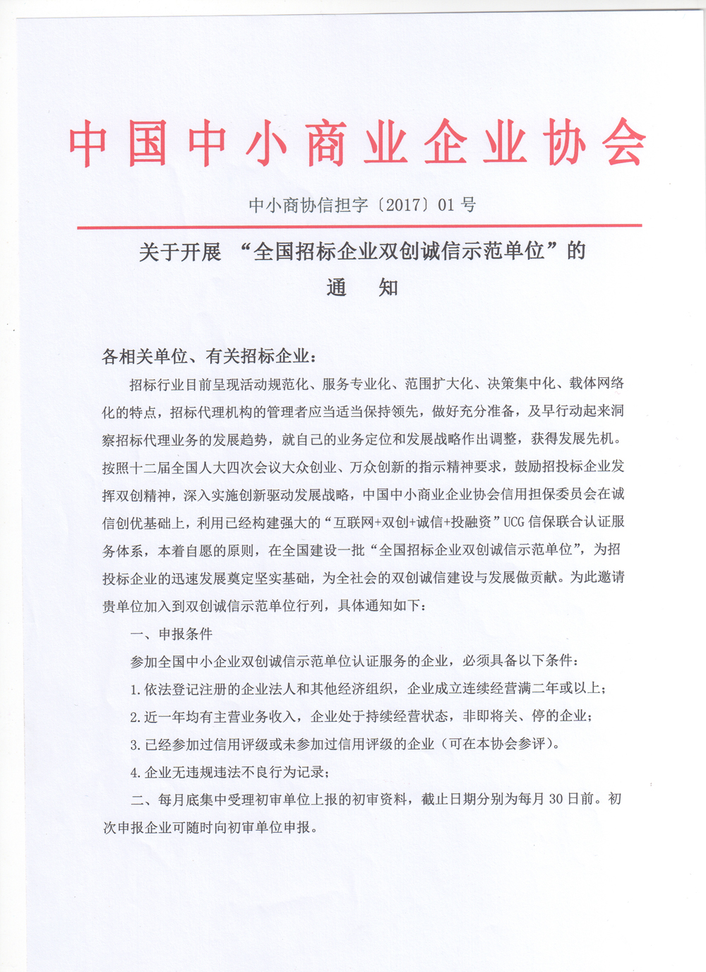 关于开展全国招标企业双创诚信示范单位的通知